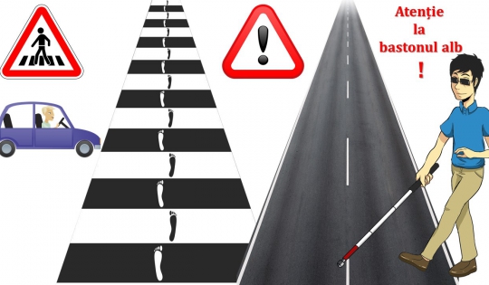 Dragi conducători auto, atunci când observați bastonul alb, gândiți-vă că, pentru unii, drumul nu este tocmai ușor de urmat! Acordați-le PRIORITATE, pentru a-i ajuta să ajungă, ÎN SIGURANȚĂ, la destinație!