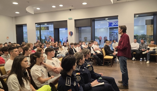 Sub sloganul ”diSCUT”, peste 130 de elevi de liceu, care fac parte din echipele participante la proiect, alături de profesorii îndrumători, au avut prilejul să interacționeze cu domnul Leon Magdan – Profesorul de Joacă, într-o atmosferă relaxantă.