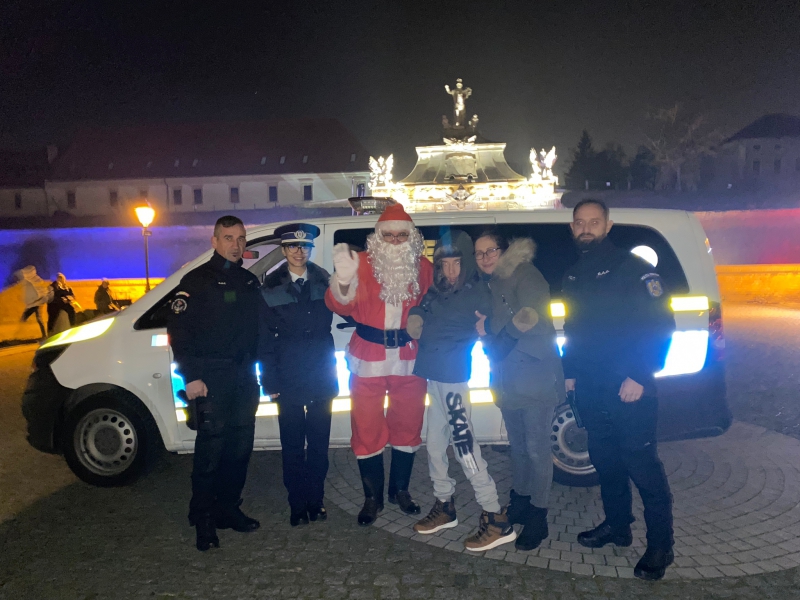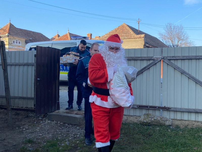 Anul acesta, Moș Crăciun, însoțit de polițiști, a poposit la Crăciunelu de Jos și la Blaj, unde s-a întâlnit cu Adelina, Valentina, Sofia, Isabela și Alexandru, copii silitori și cuminți, care cresc în familii monoparentale și cărora le-a dăruit produse electronice, rechizite, jocuri, dulciuri și fructe.